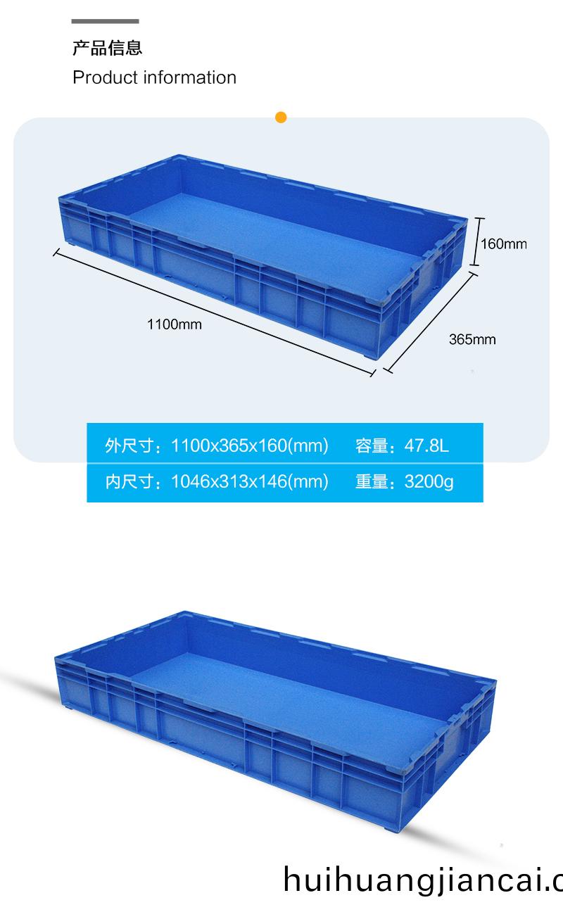 外尺寸:1100*365*160mm 內尺寸:1046*303*146mm 材質:PP 重量(liang):3200g