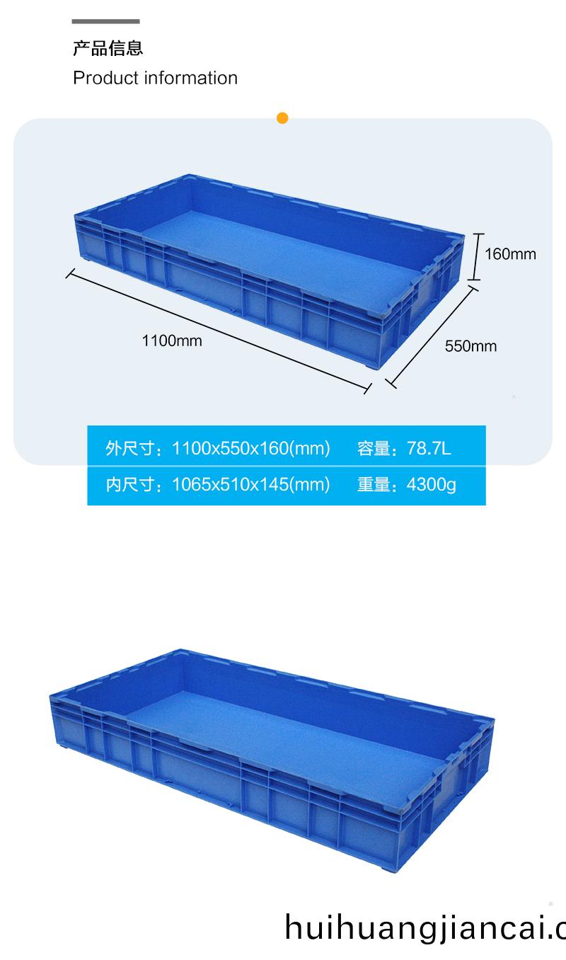 外尺寸:1100*550*160mm 內尺寸:1046*510*145mm 材(cai)質:PP 重量:4300g
