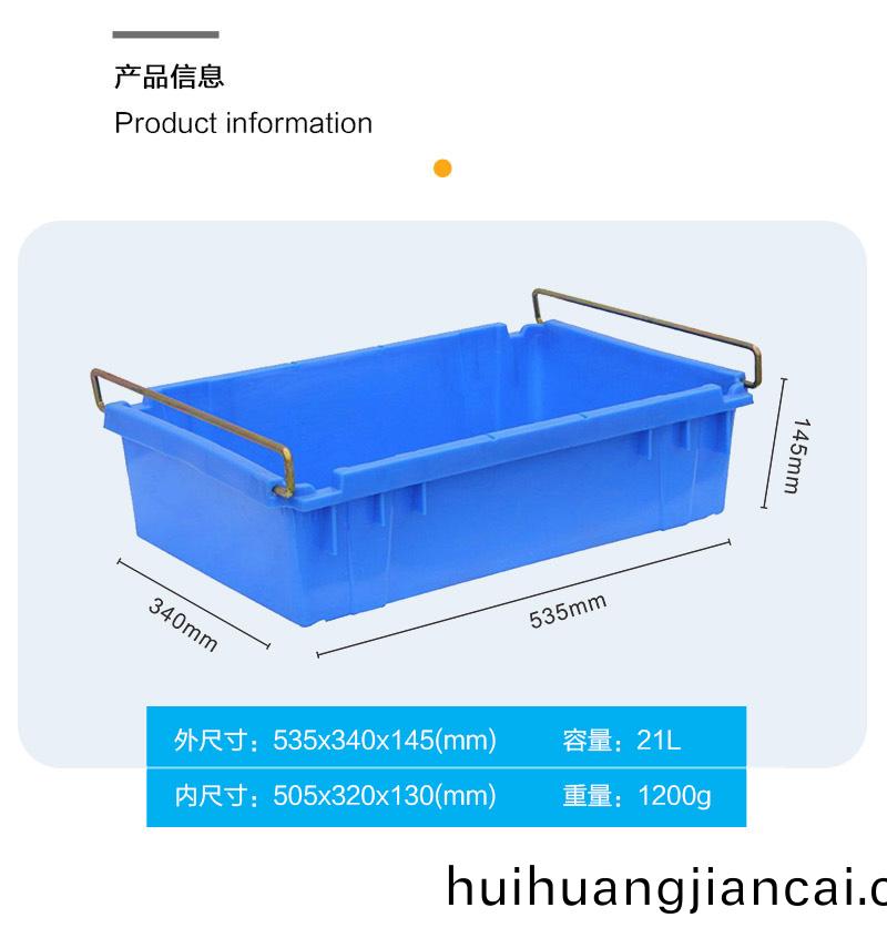 外尺寸:535*340*145mm 內尺(chi)寸(cun):505*320*130mm 材質:PP 重量:1200g