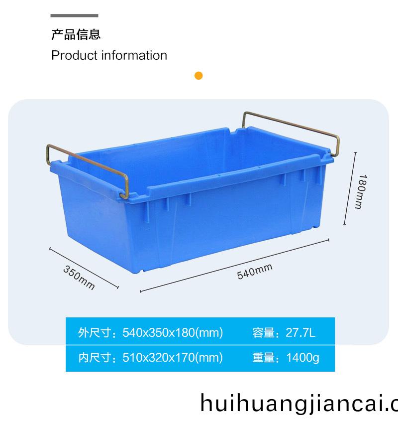 外尺寸:540*350*180mm 內(nei)尺寸:510*320*170mm 材質(zhi):PP 重量(liang):1400g