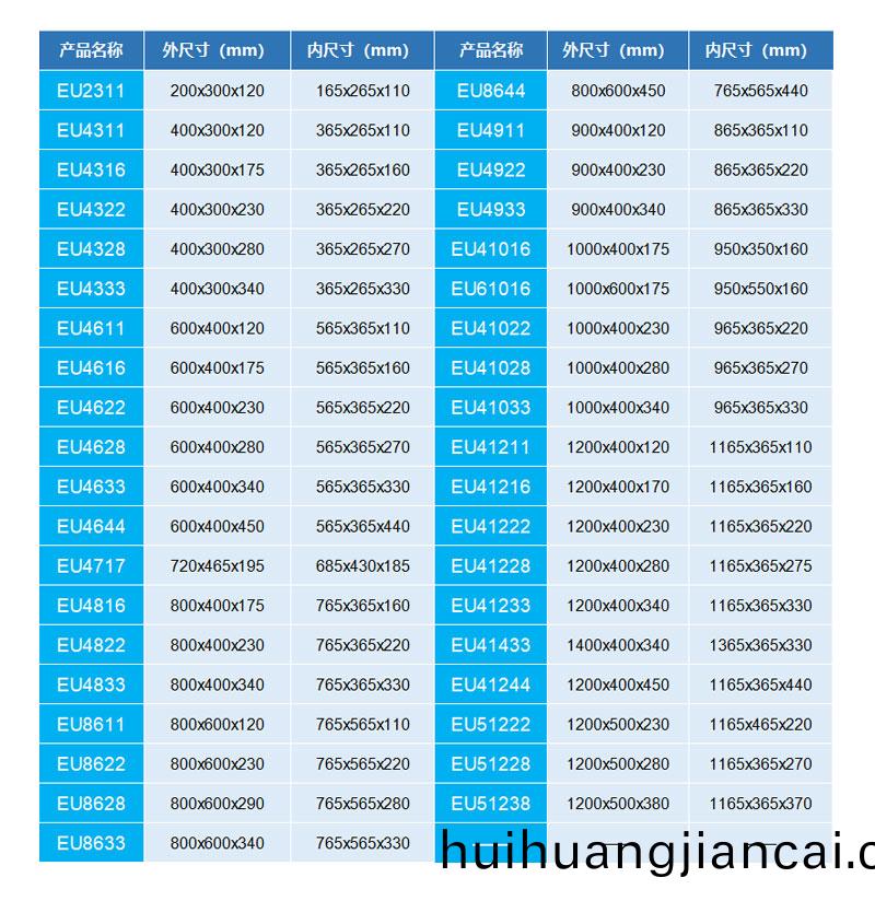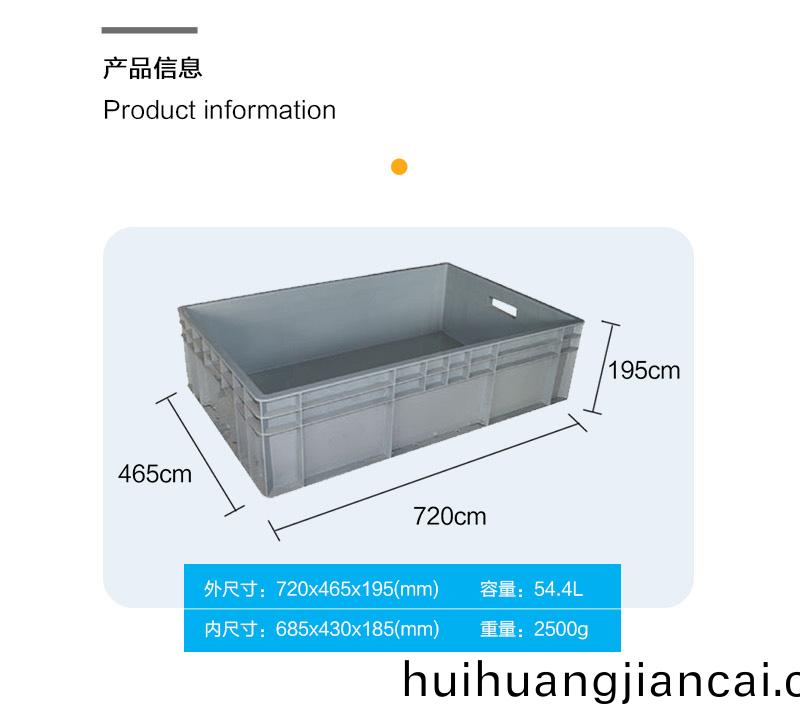 外尺寸:720*465*195mm 內(nei)尺寸:685*430*185mm 材質:PP 重(zhong)量:2500g