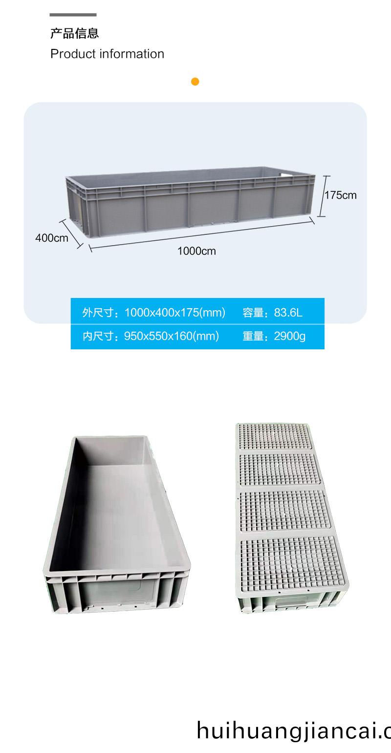 外尺寸:1000*400*175mm 內尺寸:950*350*160mm 材質:PP 重量:2900g