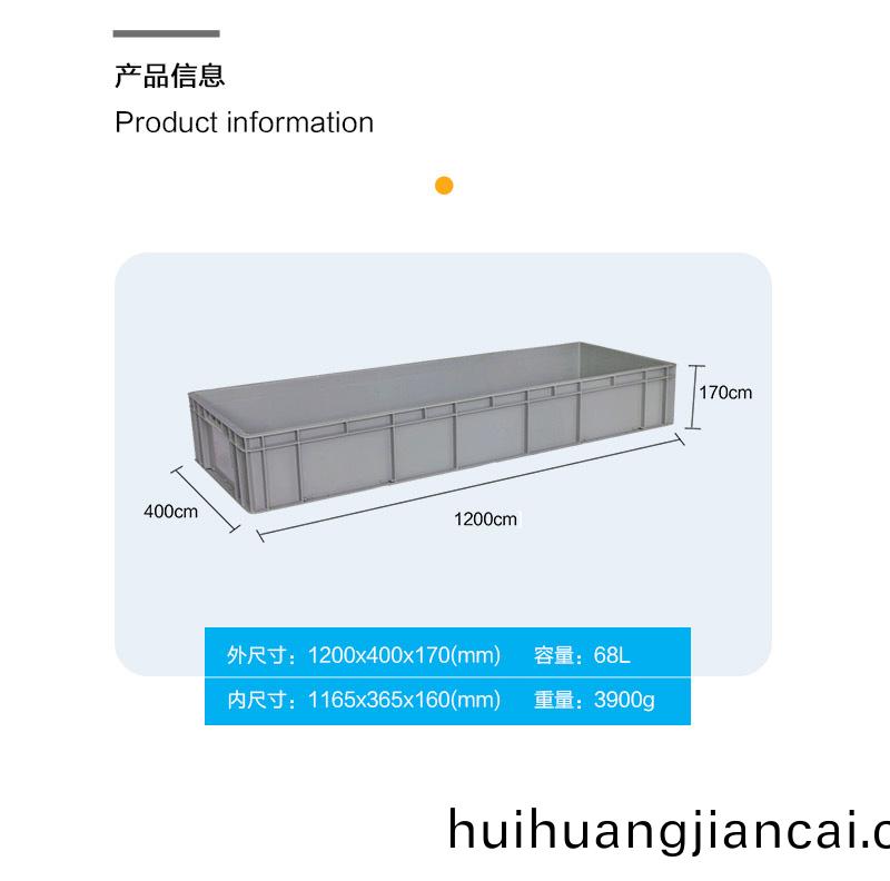 外尺寸:1200*400*170mm 內尺(chi)寸:1165*365*160mm 材質:PP 重量(liang):3900g