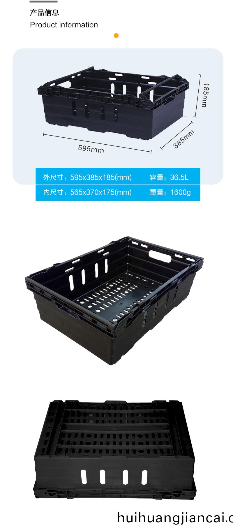 外尺寸:595*385*185mm 內尺寸(cun):565*370*175mm 材(cai)質:PP 重量:1600g