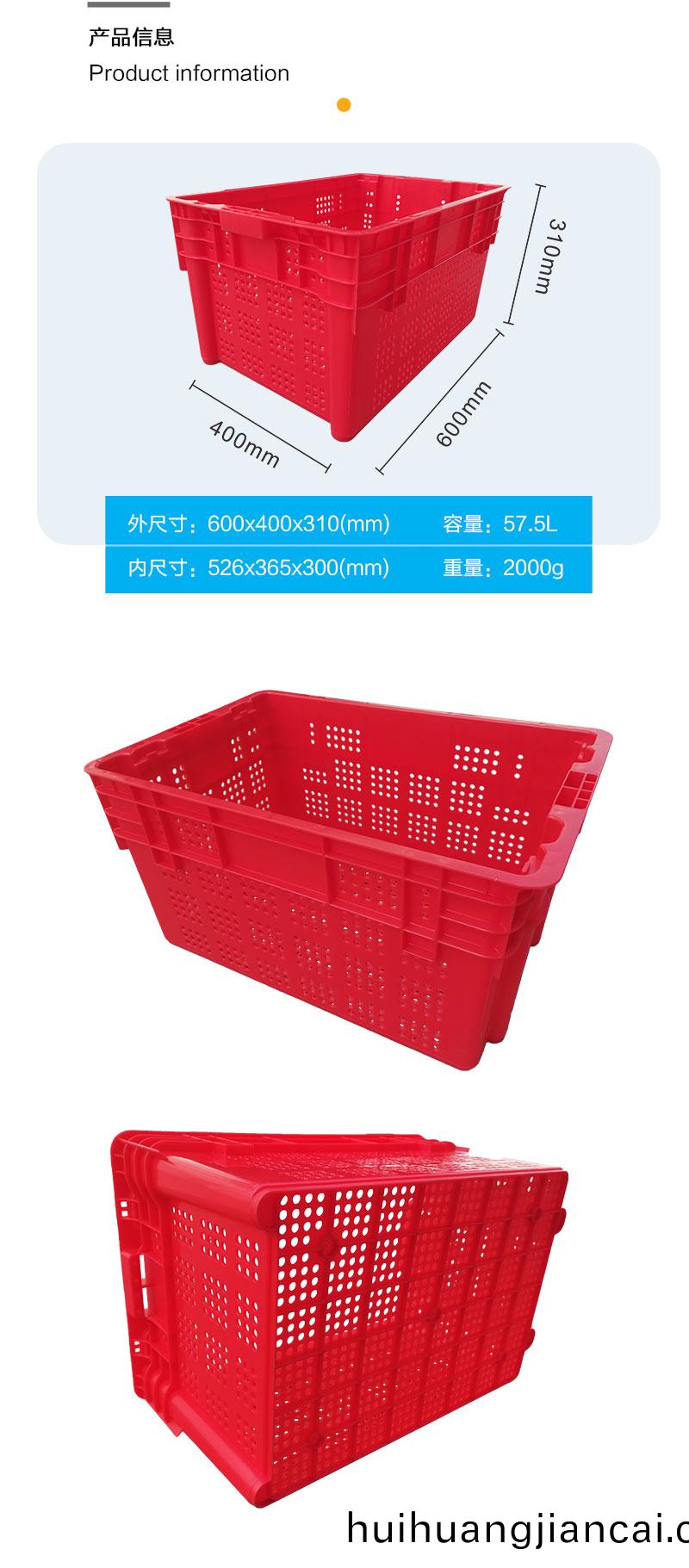 外尺寸:600*400*310mm 內尺寸:526*365*300mm 材質(zhi):PP 重量:2000g