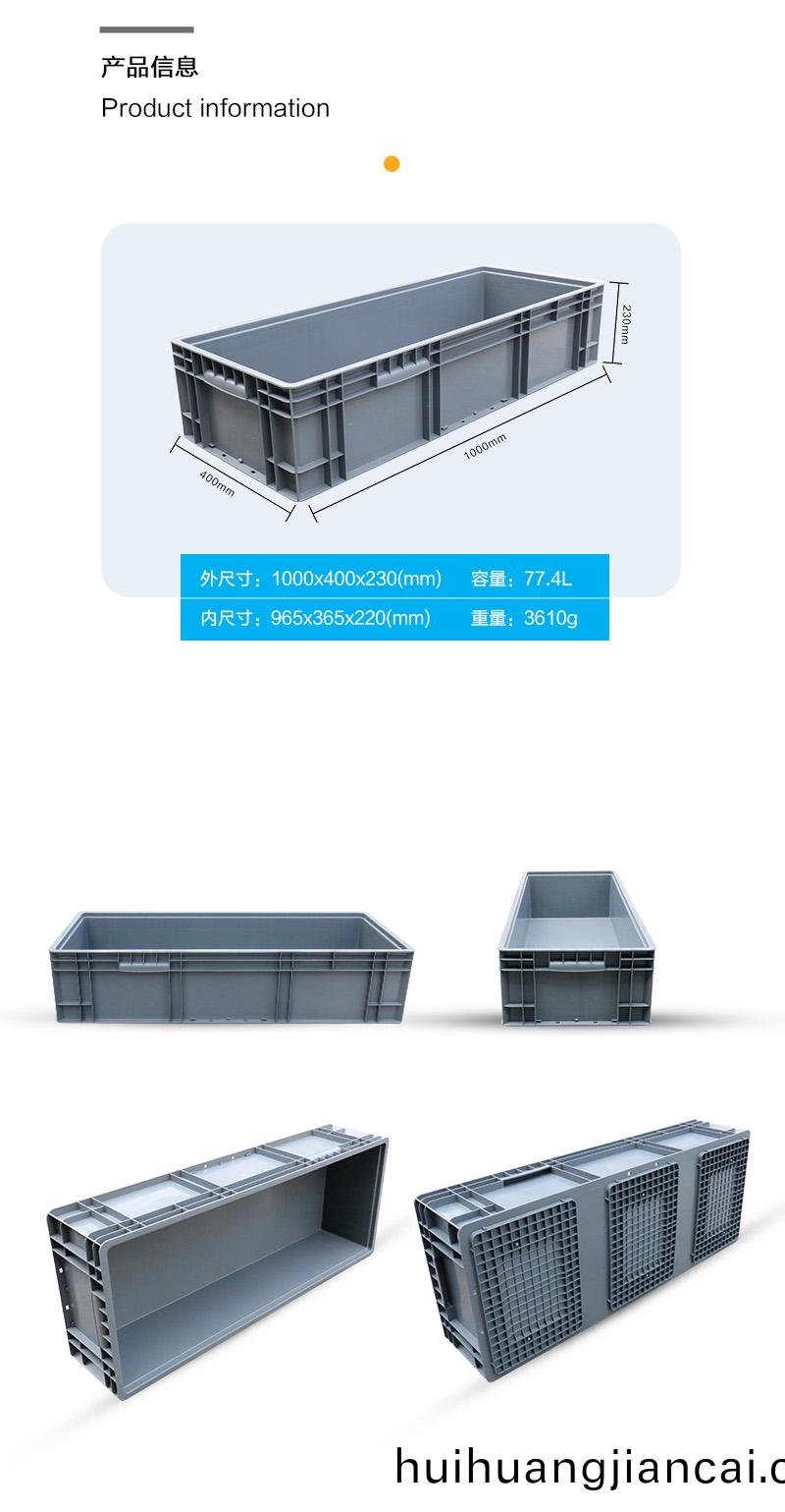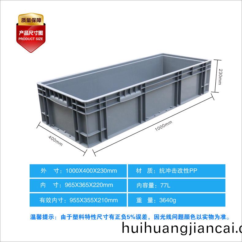外尺寸(cun):1000*400*230mm 內尺寸:965*365*210mm 材質:抗衝擊改性PP 重量:3600g