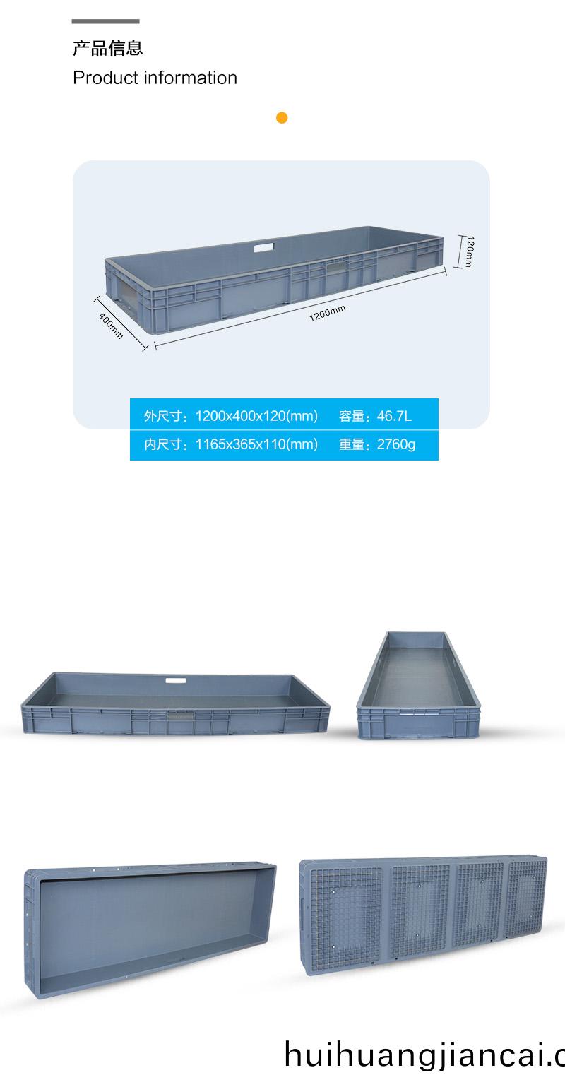 外尺寸:1200*400*120mm 內尺寸:1165*365*110mm 材質:PP 重量:2850g
