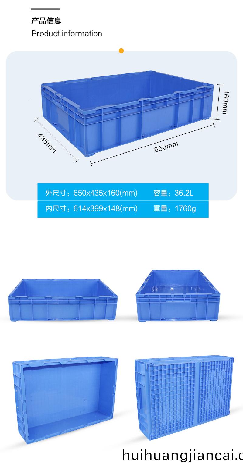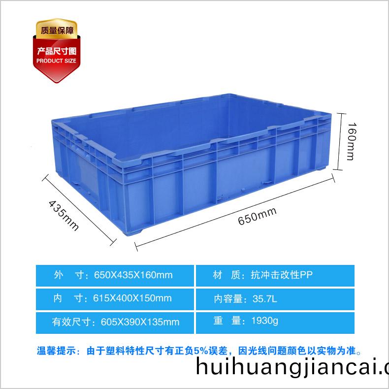 外尺寸:650*435*160mm 內(nei)尺寸:614*299*148mm 材質:PP 重量:1760g