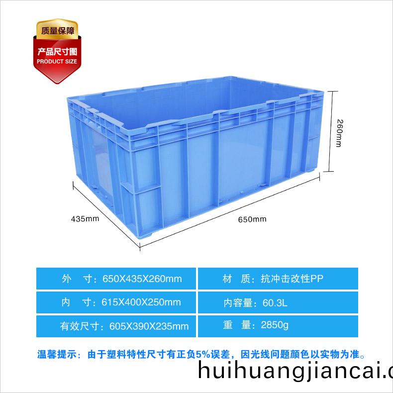外尺寸:650*435*260mm 內尺寸:614*399*248mm 材質:PP 重量:2590g