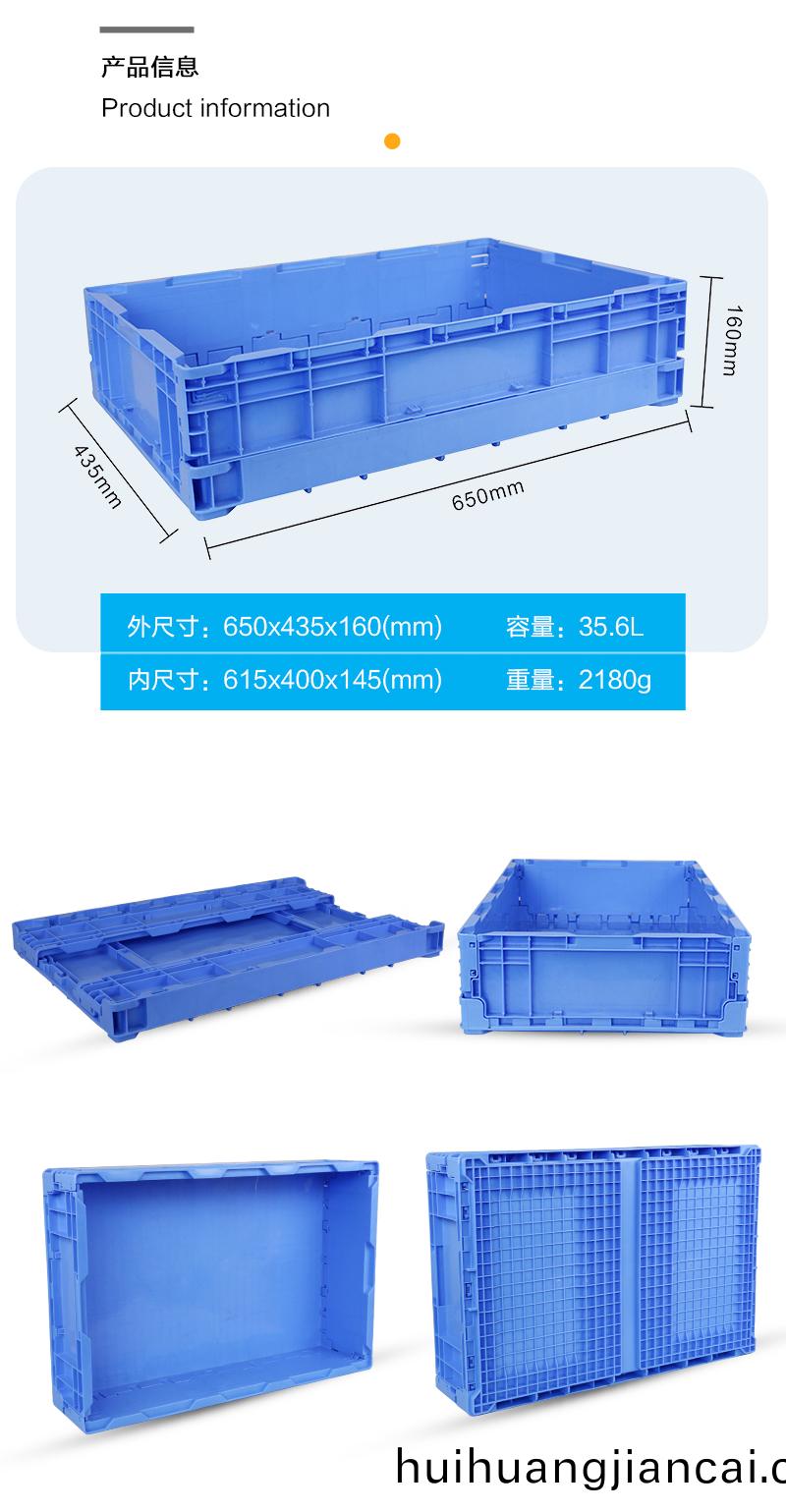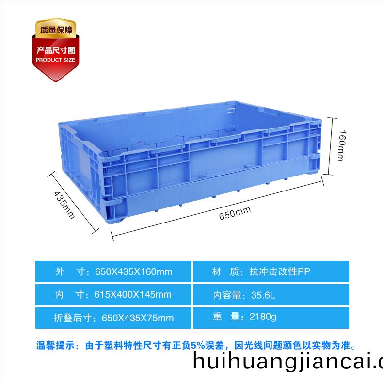 外尺寸:650*435*160mm 內尺(chi)寸:615*400*145mm 材質:抗(kang)衝擊改性PP 重(zhong)量(liang):2180g