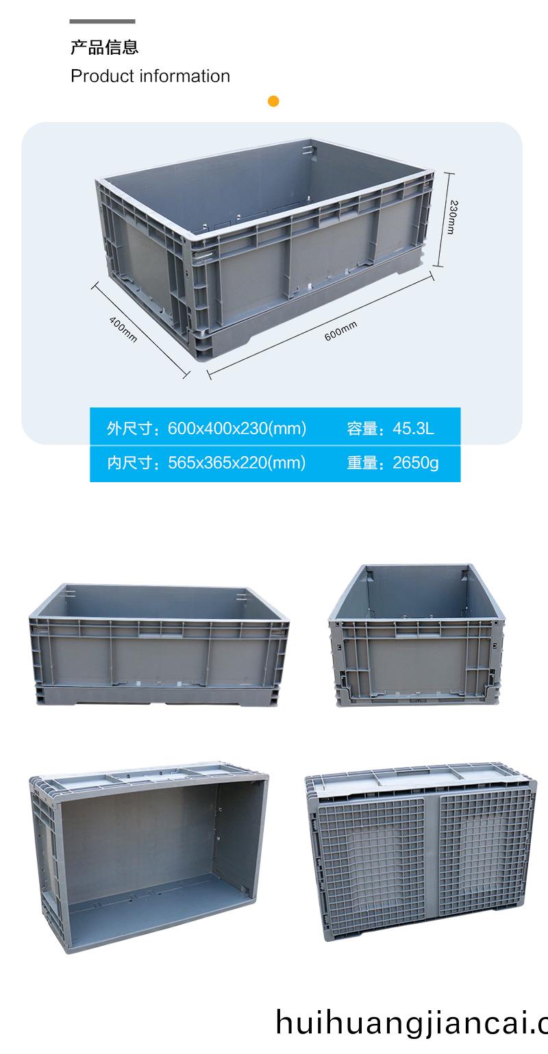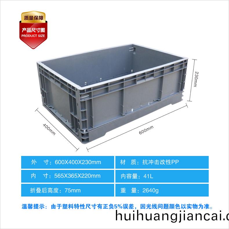外尺寸:600*400*230mm 內尺寸:565*365*220 材質:PP 重量:2640g