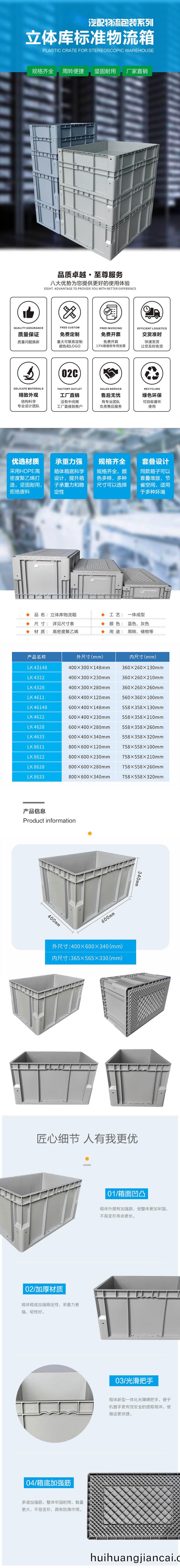 外尺寸:600*400*340mm 內尺寸:565*365*330mm 材質:PP 重量(liang):2900g