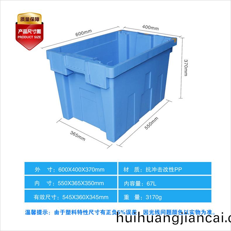 外尺寸:600*400*370mm 內尺寸:440*320*355mm 材質(zhi):抗衝擊改(gai)性PP 重量:3170g
