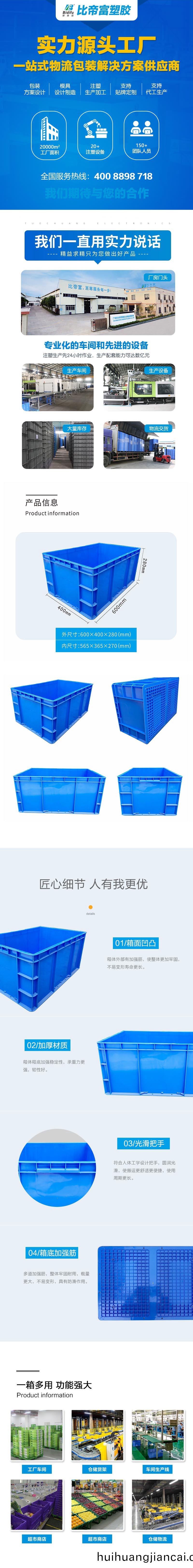 外(wai)尺寸:600*400*280mm 內尺寸:565*365*270mm 材質:PP 重量(liang):2100g