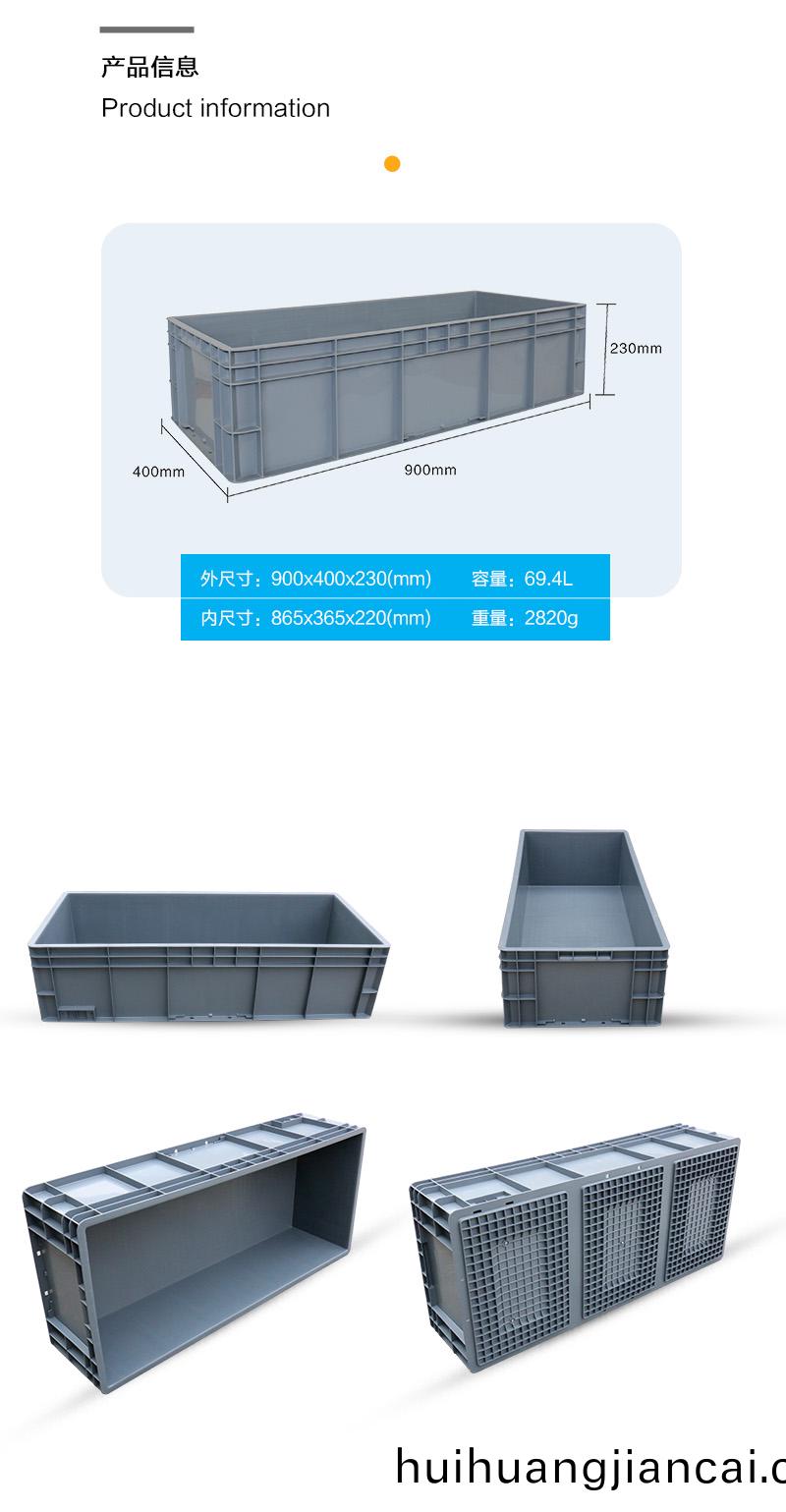 外尺寸(cun):900X400X230mm 內尺寸:865X365X220mm 材質:抗衝擊改性PP 重量:2.82kg